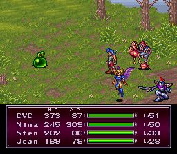 Nina (Lv10), Jean (Lv16), Spar, Bleu |
