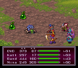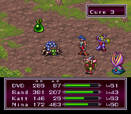 Bow (Lv16), Rand (Lv17), Spar (Lv26) |